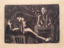 ![]() Xilogravura em papel e arroz para o romance 'Os Irmãos Karamázov de Dostoiévski. Dec 50. ME com moldura 30 x 27,5cm, MI 11 x 11cm | ![]() Linogravura colorida - Um ao outro na selva da Série Caim e Abel - 40 x 30 cm |